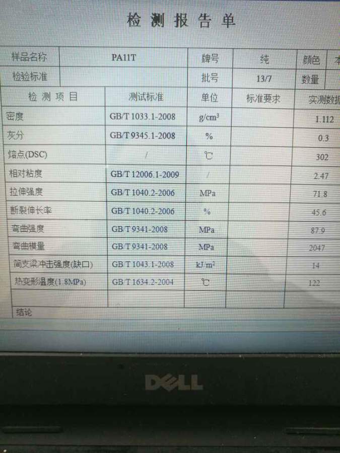 河南省君恒实业集团生物科技有限公司的年产1000吨耐高温尼龙PA11T一次投料试车成功,经过六个月的试车,已经可以稳定向市场提供PA11T产品。该产品是我国第一个采用生物法合成的一个新型耐高温尼龙。耐高温尼龙PA11T熔点310℃左右,玻璃化转变温度122℃,产品分为低粘度2.0,中粘度2.4,高粘度3.6等牌号,低粘度和中粘度为注塑级料,高粘为挤出级料,可以用于汽车,电子电气等的应用。产品吸水率低于PA6T,PA46,PPA,HTN等耐高温尼龙,尺寸稳定性好,流动性好,加工性能优良。该产品是我国继PA10T之后又一个具有自主知识产权的新耐高温尼龙,标志着我国耐高温尼龙领域走在了世界的前列。 发自小木虫Android客户端 |