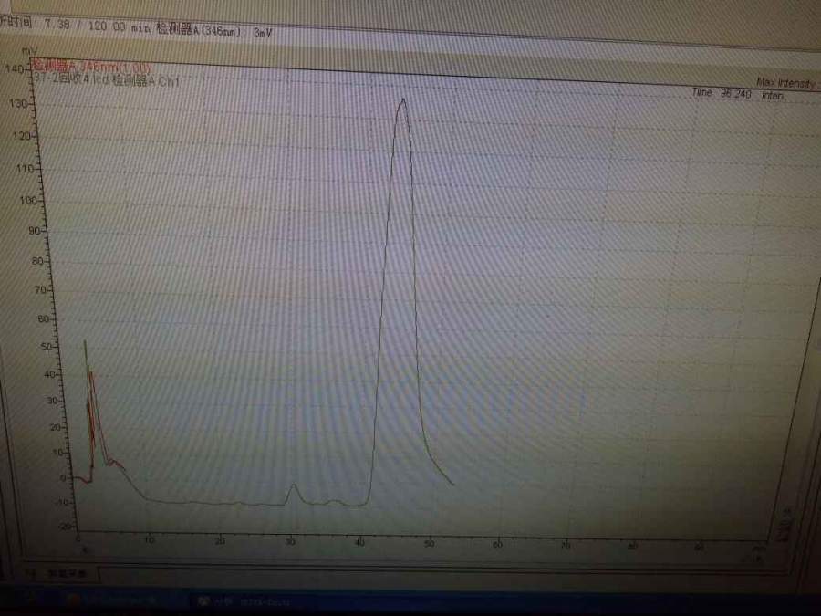 峰面积多少,看起来峰好小,你看看分离度和拖尾因子正常不。我用的也是甲醇水,如果波长没问题,我一般遇到这种就调流速,流动相比例,进样浓度。有时候也调调坐标。。。。 发自小木虫Android客户端 |