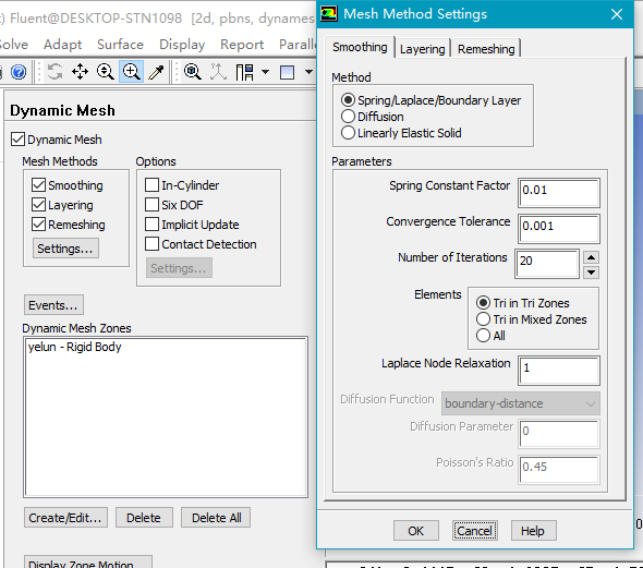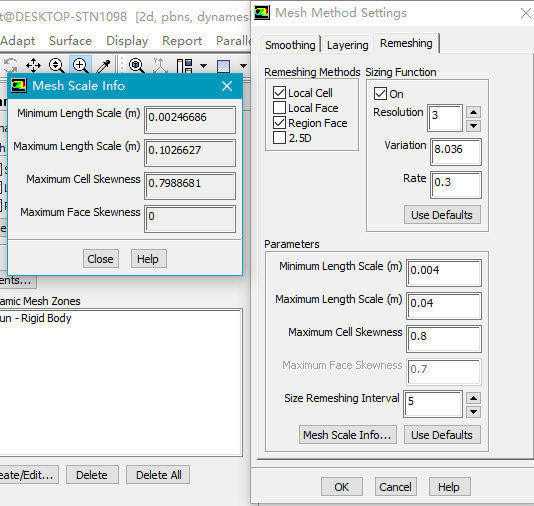 FLUENT简化计算一个三维模型先简化成二维模型(大意是一个叶轮在下部是泥浆上部是空气的流域内运动) 在设置压力出口后总报错,不设置时运行过一遍可以计算结束但结果不对(边界条件只设置了压力出口) 见截图,求教哪里出了问题 捕获.PNG 捕获2.PNG 捕获3.PNG 捕获4.PNG |