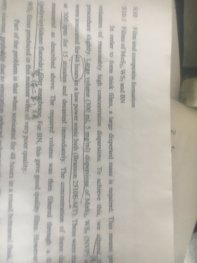重复11年Science上制备MoS2膜,制备厚层的膜的时候,发现有一句“sonicated for 48h in a low power sonic bath”(Branson 2510E-MT)这里的功率低到多少呢?还有,能不能将功率变大,少超声一会呢?多谢各位! 发自小木虫IOS客户端 |