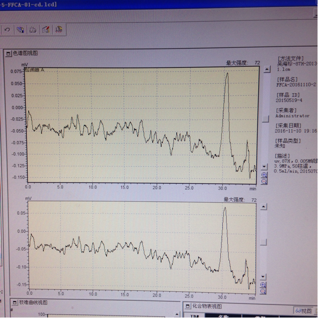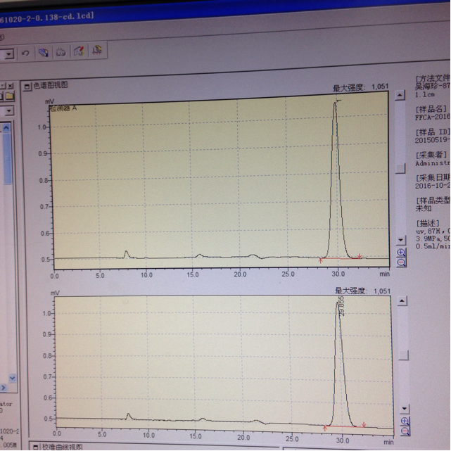 配标准曲线时的问题,如图1,正常,后来压力突然降低,正常关机后重新开机,出现如图2的情况。工程师说,换下柱子接上两通,先用异丙醇冲洗,再用甲醇冲洗,可还是如图2的结果,第一次用液相色谱,求助解决办法,分析方法建立不起来,老板都急了,再做不出结果,就…… 发自小木虫IOS客户端 |