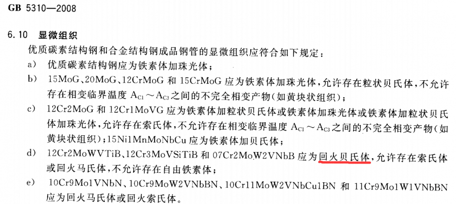 | 回火贝氏体究竟是个什么组织?(GB5310中对12Cr2MoWVTiB钢组织的要求是回火贝氏体,怎么理解呢,) |