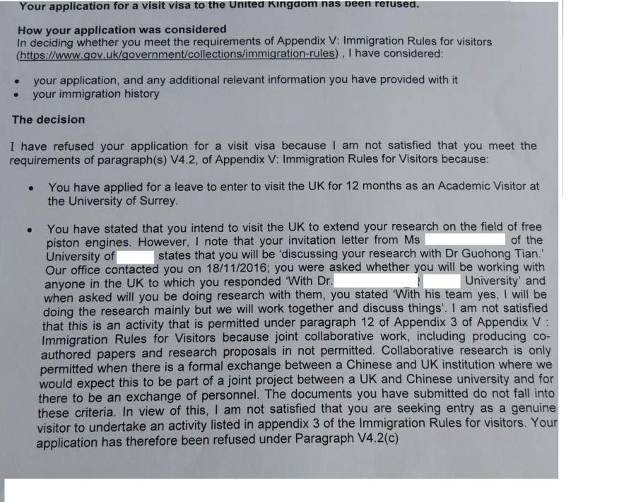 各位: 在木虫学习了一阵,申请英国AV签证,材料准备的挺多,可还是被拒了,麻烦有经验的虫友们帮忙看看,下步应该怎么做啊,是不是需要重新写邀请函,然后还需要提交别的材料么?或者附加解释信? microMsg.1480049030898.jpg microMsg.1480049050387.jpg |