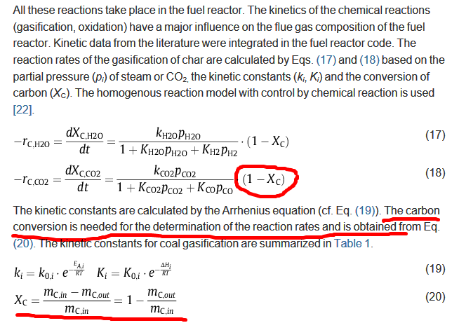 请教虫友关于Aspen 全混釜反应器外带Fortran反应动力学问题。 本人在模拟流化床反应器化学链煤燃烧,其反应速率动力学表达式如下图: 由于速率方程与反应器出口流股有关,所以我采用Aspen 计算器模块将出口物流信息传递到外置Fortran程序中, 外置Fortran反应动力学已经编译好,但是在Aspen求解的过程中出现了问题:反应器迭代过程中,计算器模块没起到传递作用, Fortran计算不出正确的反应速率。困扰好久了,求助万能的虫友,十分感谢!!! 反应动力学方程@wuming524 |