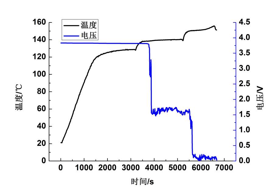想问下各位大神,我对手机锂离子电池进行加热,荷电态100%的电池在加热过程中,电压缓慢降低(没降至4V以下),热失控发生瞬间电压瞬间降为0,但为什么荷电态50%的电池电压变化还会分阶段降的,像图中所示,先降至2V左右,再降至1V左右,最后降为0呢?电压如此变化是什么原因造成的? 123.jpg |
