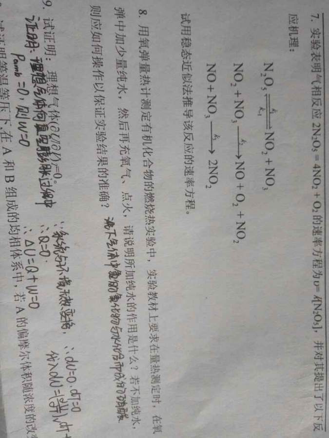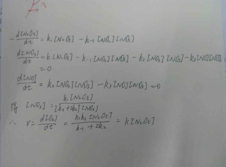 稳态近似法,NO,NO3的净生成速率为0,联立方程可求。 发自小木虫Android客户端 |