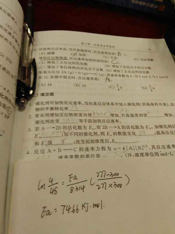 求助大神,第九题,我的疑问是这道题要不要说明它是个零级反应,否则牛奶变酸的时间比,就不能代表速率常数的比,那我的计算公式还正确吗 发自小木虫Android客户端 |