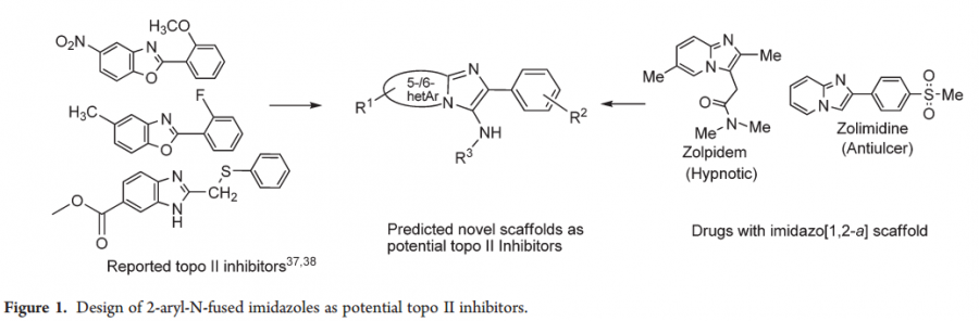 看帖子的亲们,上图中左边是3个已在文献中报道的Topo2抑制剂,右边是zolpidem(唑吡旦)是一种安眠药,zolimidine(佐利咪啶)是一种胃肠道药物, 这篇文献通过这种方式设计出来了一个新型的Topo2小分子抑制剂,请问这种方法有什么说法,来头吗?有兴趣的亲们还望讲解一下这其中的奥妙。谢谢亲们啦! |