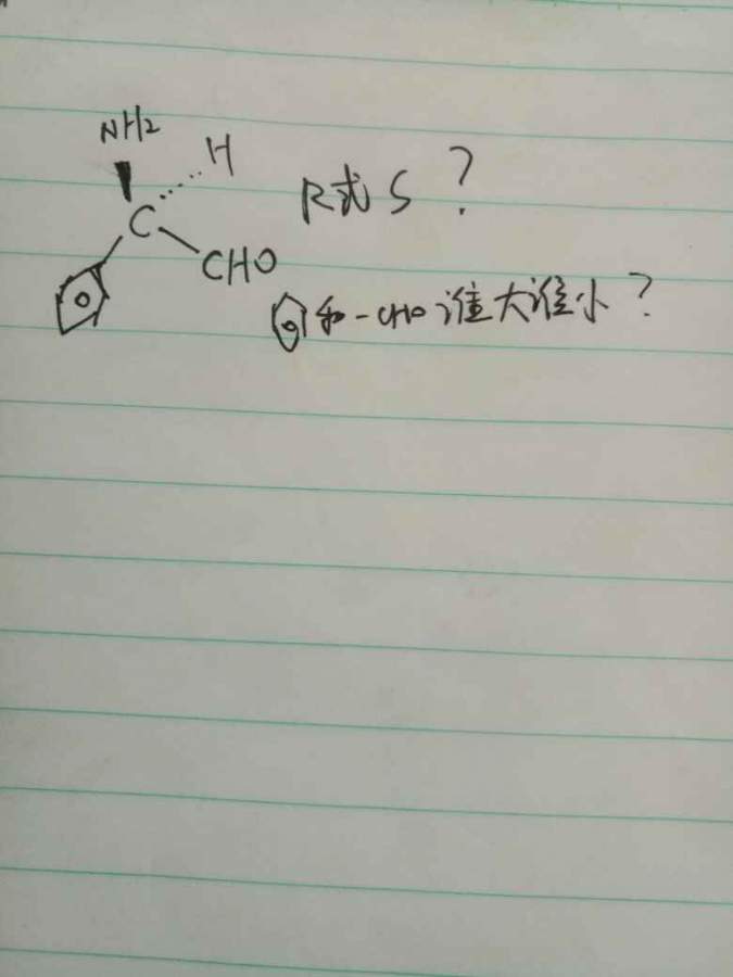 嗯嗯,蟹蟹前辈,估计是书印错了。那如果一个手性碳连一个苯环,一个醛基,那哪个哪个小?比较大小时,醛基O比苯环直接相连的一个C 大,但与醛基相连的一个H 比苯环另一个C 小!那苯环和醛基哪个是大基团?这个比较规则到底是什么?求前辈指教啊! 发自小木虫Android客户端 |
