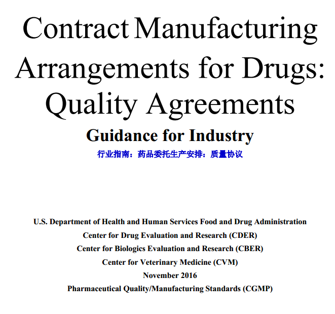 FDA行业指南-药品委托生产安排:质量协议(中英文)2016