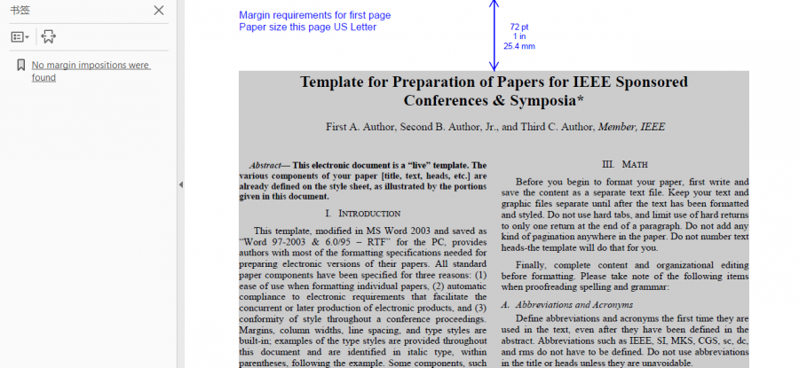 向各位虫友请教一个问题,我第一次投稿IEEE国际会议,ICCA2017,现在在论文的投稿中遇到了一个版面问题。我将提供的模板直接上传投稿,提示如下。这个问题,不太理解这个是说页边距不对吗? _75CT{{7`}29ZR{5C%N9(3L.png J@{}UN}I{N[B(X9X]547{01.png |