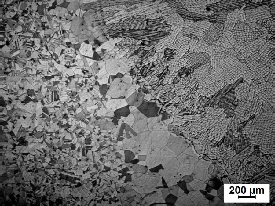 研究急冷条件下焊缝组织结构的变化,冷却介质为液氮,在一侧喷射,但是在实验过程中,液氮喷射侧组织出现柱状晶,而另一侧未冷却处却出现细小等轴晶,不知原因为何。 液氮喷射条件下未冷却侧联生区组织 液氮喷射条件下冷却侧联生区组织 正常焊联生区组织 |