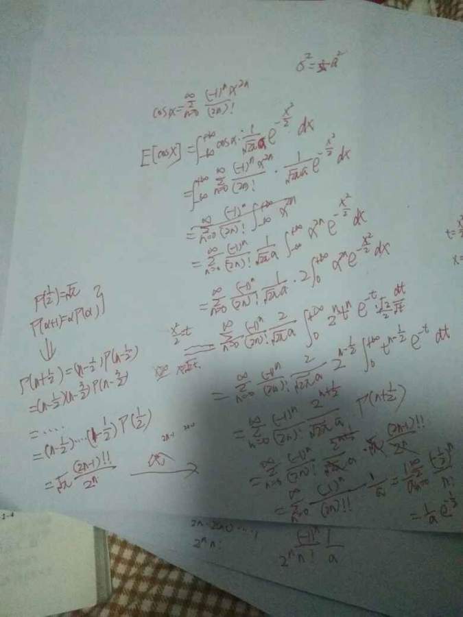 x是正态零均值白噪声,方差为a^2。推cos(x)的期望等什么?已有1人参与