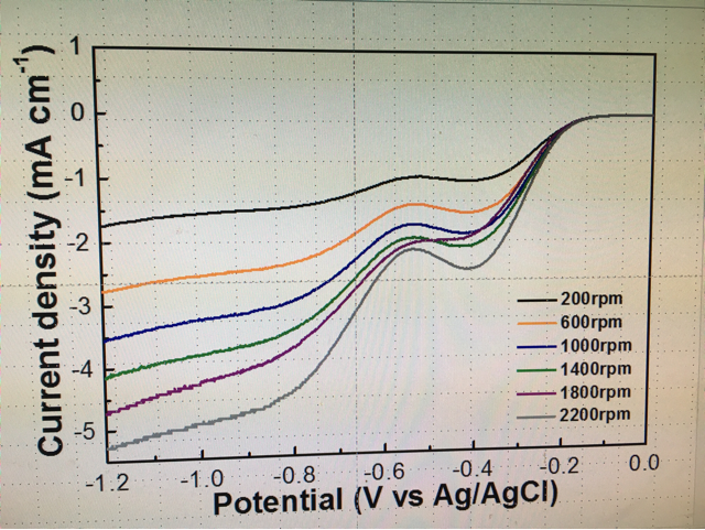 测试条件:0.1M KOH溶液,氧饱和,玻碳电极上滴涂催化剂。扫描速率10mV/s。 我知道这个性能不好,但是还是想知道其中代表的信息。 请教各位大神 1. 我这个lsv曲线能看出什么信息 2. -0.4处的峰代表什么信息,是否是玻碳电极的性质而不是我催化剂的性质 3. 是否有氧还原反应发生,能否看出来是四电子反应和二电子反应 这些对我非常重要,在此谢过大家! 发自小木虫IOS客户端 |
