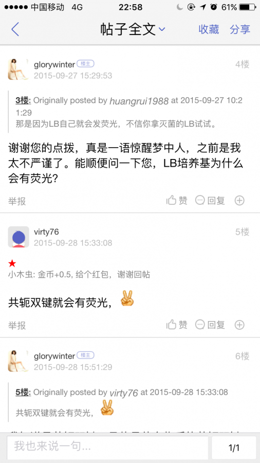 LB培养基貌似具有很强的自发荧光,我想通过紫外灯观察转染了荧光蛋白的细菌,所以想知道有没有无荧光的培养基?我看别人的GFP细菌在自然光下也呈绿色,为什么我的没有(荧光显微镜下有荧光)?是表达量不够吗?如何增加蛋白质的可溶性表达? @gyesang 发自小木虫IOS客户端 |