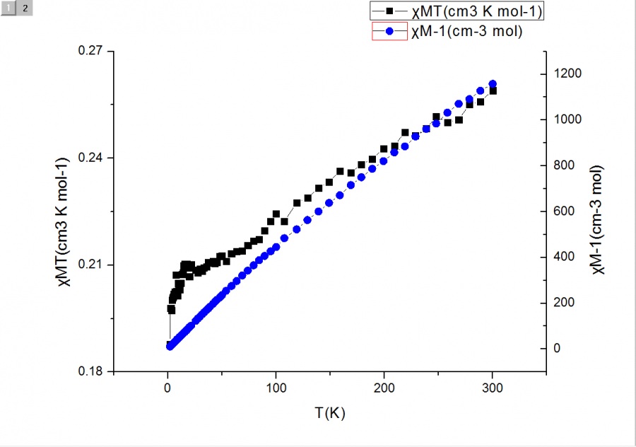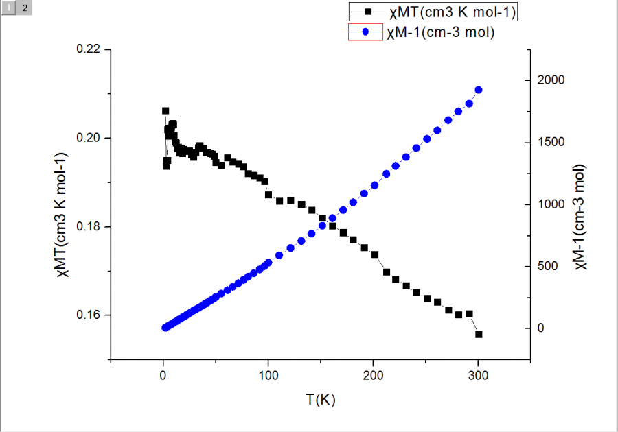 这两张是两个不同取代基铜配合物的变温磁化率的图,求各位大神给解释一下黑色线为什么会出现这种趋势?数据不好?为什么会有很多跳点?这种趋势应该怎样分析呢?难道跟铜配合物有关? 3甲氧.png 4甲氧.png |