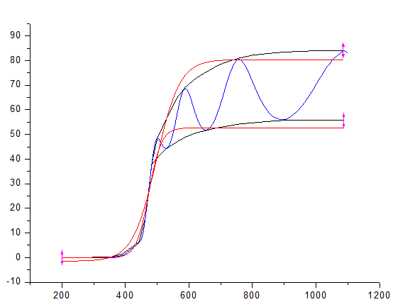 想用透过率图谱包络法计算薄膜折射率,图中蓝色曲线是测到的薄膜的UV-vis透过率图,黑色曲线是自己做的包络线,红色曲线是拟合得到的包络线。但是感觉和实际包络线差别较大,用拟合的包络线计算出来的结果靠谱吗? 图.png |