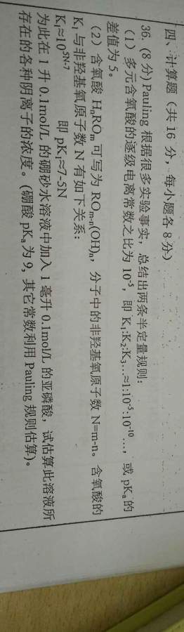 由题目所给的规则,就能求压磷酸各级解离常数。根据平衡常数求解浓度。 发自小木虫Android客户端 |