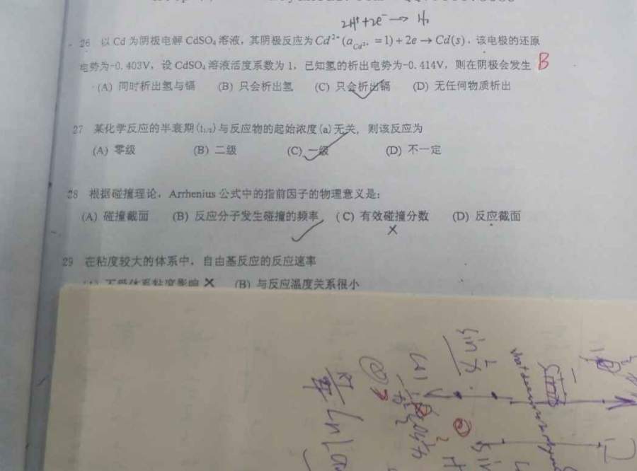 答案给的B,但是这里的镉的电势比氢的更高,怎么能是氢先析出呢? 发自小木虫Android客户端 |
