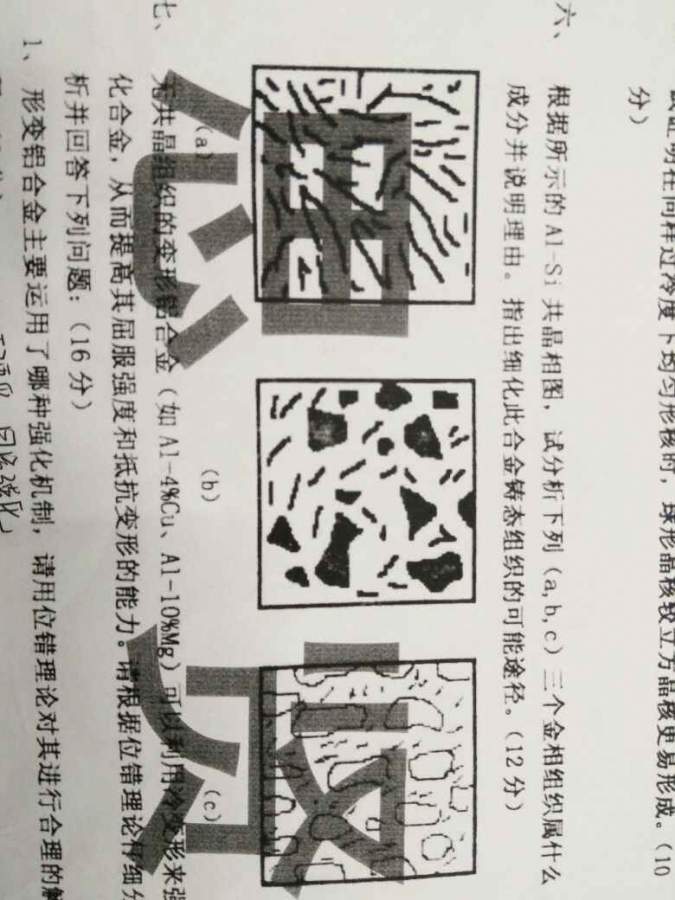 黑色的有棱有角的是si相,所以a,b都是过共晶合金,c是亚共晶合金,共晶成分的合金得不到共晶组织,只能得到图c的组织