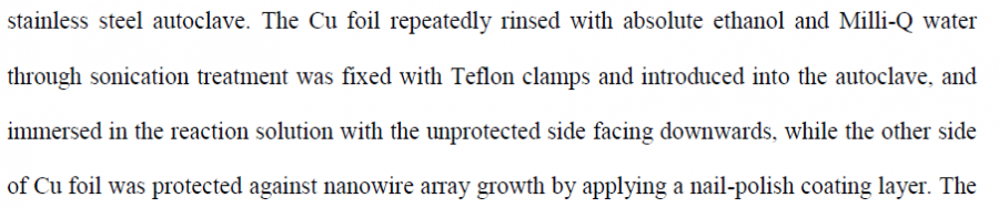 水热法在Ni基底长纳米线,如何只让一面长上所需要的东西,另一面不长,涂一层疏水的材料吗?各位大神是怎么做的,有想过类似的想法吗?这个热点文章里用到了指甲油,神来之笔,各位觉得如何? 文章标题.png 指甲油包覆.png |