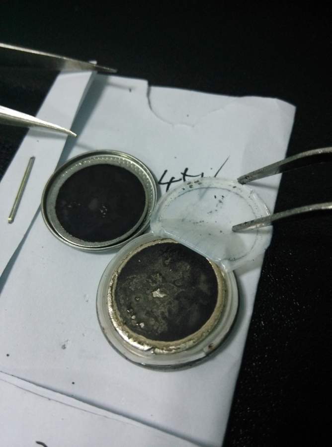 电池循环完之后拆开发现锂片上覆盖着一层灰色的东西,如图;那是不是枝晶?1、导致锂枝晶产生的因素是什么?2、半电池中如何抑制枝晶的产生?各位路过的朋友帮忙解答一下。