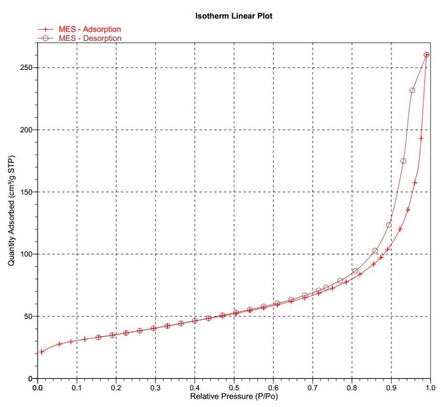 小硕以前从来没测过BET,对吸附脱附BET分析一窍不通,发帖交流。![]() 图片为我的样品吸附脱附曲线,经过网上简单的了解与查询,觉得符合Ⅱ型吸附等温线(非孔型),低压段有偏向Y轴趋势,但是不是特别偏,这是否意味着我的材料内部微孔较少,大多数为非孔?但是测试报告显示材料大多数孔径分布在20nm-40nm,为介孔。滞后环类型不确定是不是H2型。求指导,求交流~~~感谢! 捕获.JPG |
