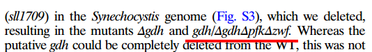 请问这个表示什么意思,我知道△是敲除的意思,可是‘/’表示什么意思啊?后面是敲除了三个基因,可是基因gdh是怎么回事啊? 是敲除了还是怎么了, 看不懂啊