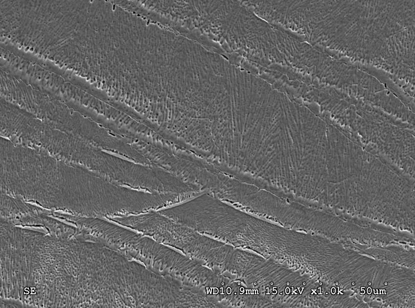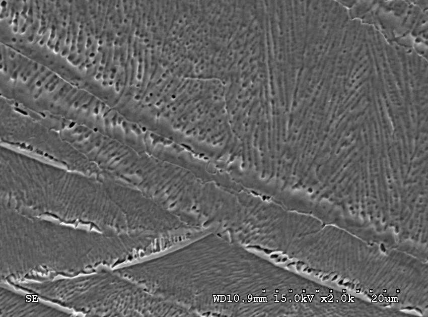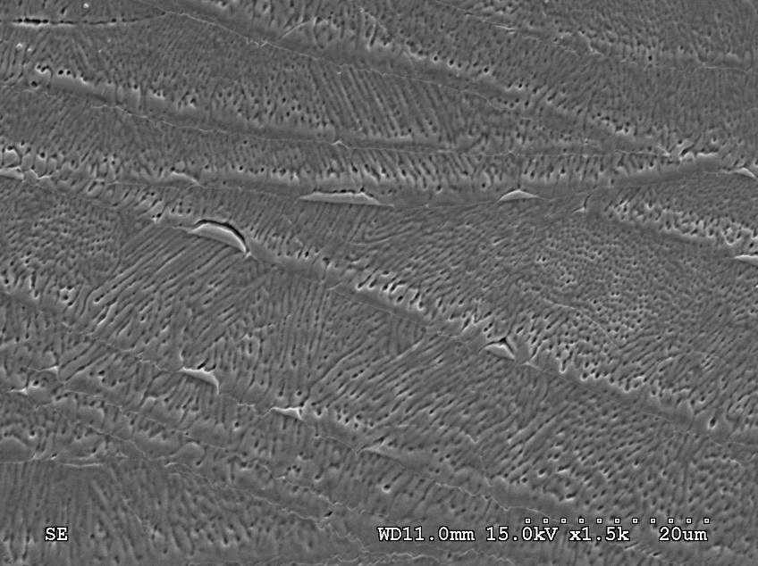 各位专家大家好 我这边有个问题想请教一下 我使用Nd : YAG laser 进行304不锈钢推叠焊接 然后使用草酸进行腐蚀 我看SEM图看不出来这是什么相 我查了一下跟铁素体并不像 还是这只是普通的树枝状晶? 但应该要有铁素体的产生不是吗? 不好意思麻烦各位专家的解答 谢谢 6-1.jpg 6-2.jpg 1000倍.jpg 1500倍.jpg 2000倍.jpg |