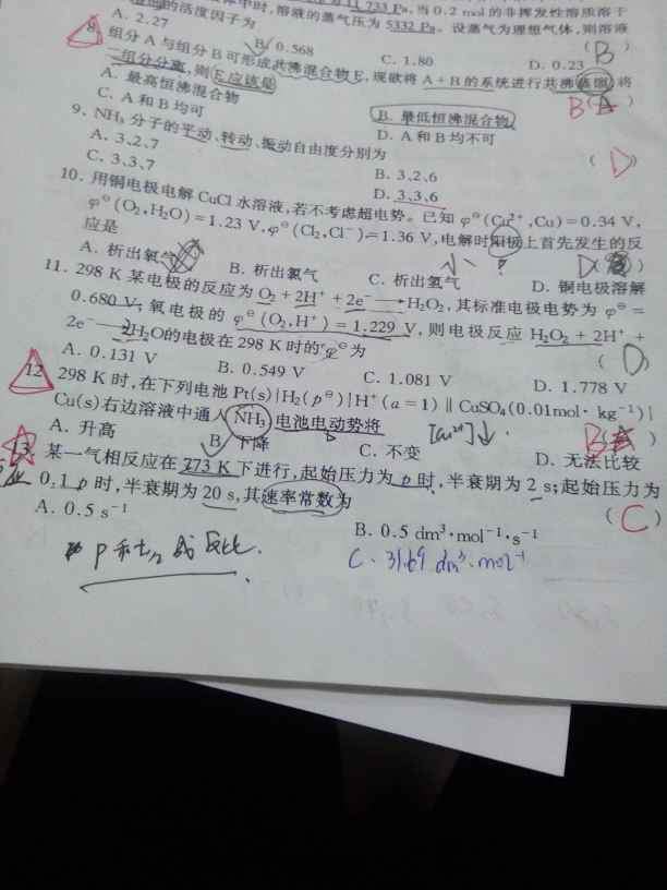 13,根据半衰期的单位可以知道反应级数,便可求解。9,根据dG=-SdT+VdP+rdA。