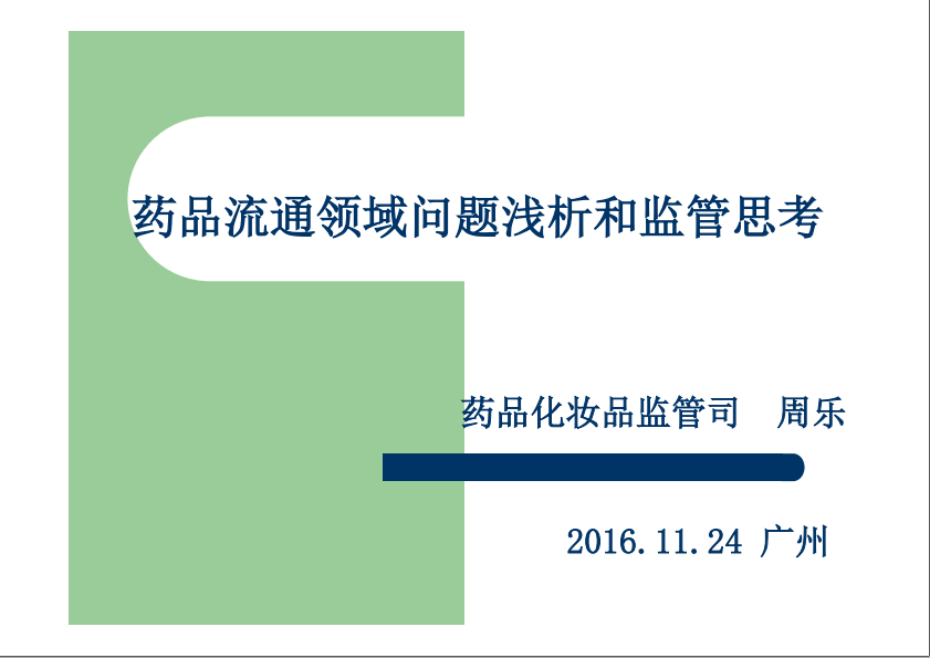 药品流通领域问题浅析和监管思考—周乐(CFDA药品妆化品监管司)2016.11.24