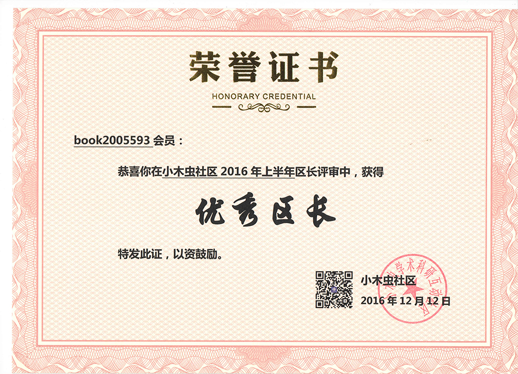 恭喜【 book2005593】获得2016年第4季度优秀区长