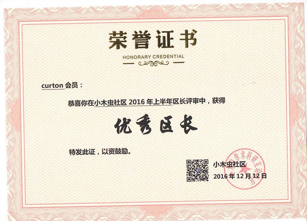 恭喜【 curton】获得2016年第4季度优秀区长