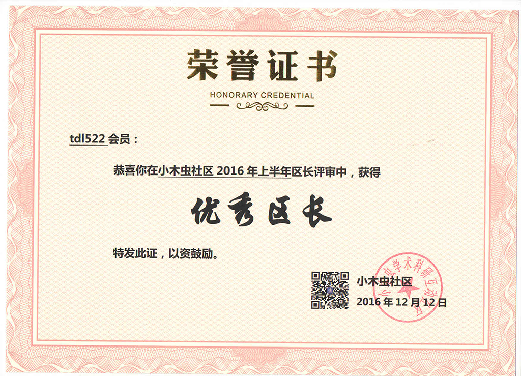 恭喜【 tdl522】获得2016年第4季度优秀区长
