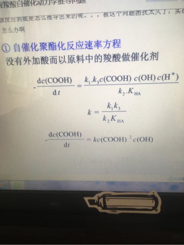 潘祖仁版,缩聚反应羧酸自催化三级反应动力学推到问题。。