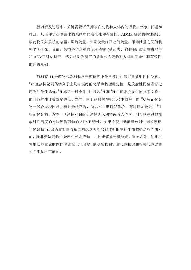 低能量放射性同位素碳-14、氚在药物吸收、分布、代谢和排泄(ADME)研究中的应用