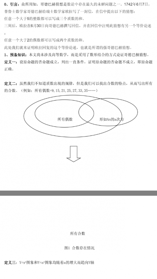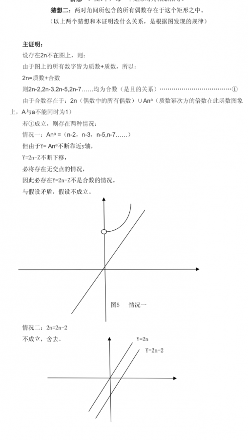 原命题:大于2的任意偶数都可以用两质数之和表示 否命题:存在偶数2n(下标0)不能用两质数之和表示 即不在图上 2n的意思是偶数 假设存在一个偶数不在图上 对此进行证明 否命题不成立 即原命题成立 发自小木虫IOS客户端 |