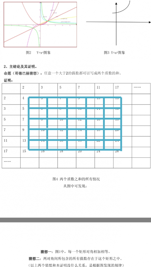 图3下接: 综上,命题①不成立。 所以假设不成立。 故,2n在图上 每一个偶数都可以表示为两质数之和 补充: 定义一的意思是反证法→_→ 到目前我都认为我的证明很对,但是身边没有这方面的老师可以求证。欢迎来找漏洞!我会认真回复的! 发自小木虫IOS客户端 |