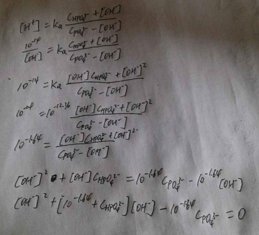 0.20L的NaOH溶液(2.50mol·L-1)、0.20L的H3PO4溶液(0.50mol·L-1)和0.20L的Na2HPO4溶液(2.00mol·L-1)混合。达平衡后,溶液的PH为多少?此溶液能否用作缓冲溶液? @jiagle 发自小木虫Android客户端 [ Last edited by 冰点降温 on 2016-12-9 at 10:15 ] |