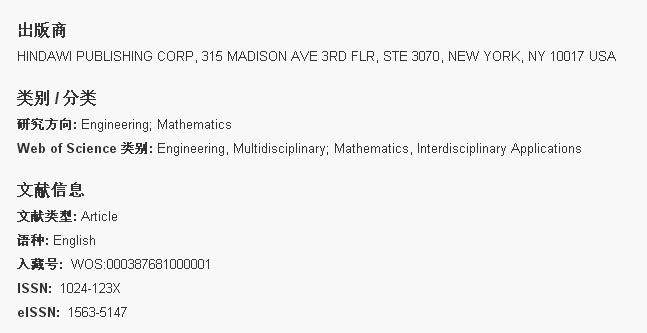 求助: 这篇文章被SCI收录了吗? 文章题目:New Exponential Stability Results for Neutral Stochastic Systems with Distributed Delays 期刊:Mathematical Problems in Engineering, Volume 2016, Article ID 9626725, 8 pages 最好有截图!谢谢! 抱歉, 金币不多哦。 ![]() ![]() |