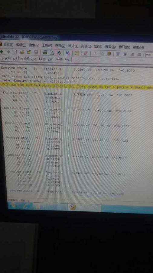 小弟工业分析本科毕业论文做某化合物吸收和发射光谱理论研究,没学过量子化学。现在用g03做了opt优化及在其基础上td,老师要求再继续cis,然后就没管我了。可是看了论坛上的信息和资料感觉太高深,希望各位解答几个问题: 1,整个研究重点应该放在哪里,我看了师姐的论文,是直接td后研究前线轨道能隙差那我是一样还是继续cis再研究? 2我的td命令行是#p td(nstates=10) b3lyp/6-31g(d),所以得到数据如图1,请问哪个才是我要的homo和lomo? 3同样我有10个激发态,哪些是我要研究的,如何在没有软件情况下手动计算跃迁轨道贡献? 请各位给予力所能及帮助,感激不尽。 发自小木虫Android客户端 |