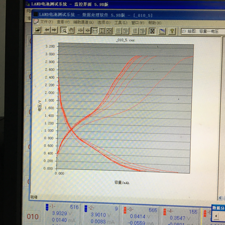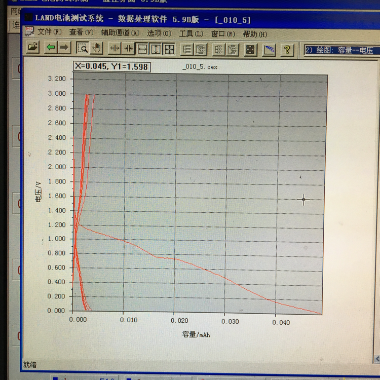 输入重量,横坐标换成 mAh/g。 楼主的电池第一次放电最长,后面不行,说明循环性能不好!主要是正极不可逆。