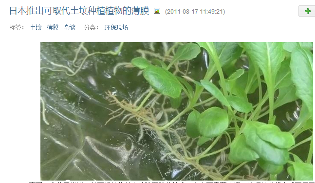 我在网上查阅了日本Mebiol公司的imec薄膜种植技术,文章中说植物根只是在薄膜表面生长,不能穿透薄膜。那这样种出来的植物产量能大吗?这样种植根还能正常发育吗? 大家帮忙分析分析。我觉得这样种植太不可思议了。 附件有我上传的文献和相关说明。 薄膜种植.png |