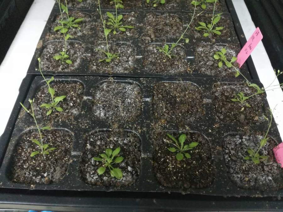 养拟南芥的培养室,种完一周左右土里就长出白色的真菌(如下图),之前已经用70%的酒精和84加紫外很仔细的消毒过一次,但是还是长了真菌,不想用甲醛熏蒸,因为培养室没法通风,想问问这是什么真菌啊?求推荐消毒方法,拜托![]() IMG_9218.JPG |