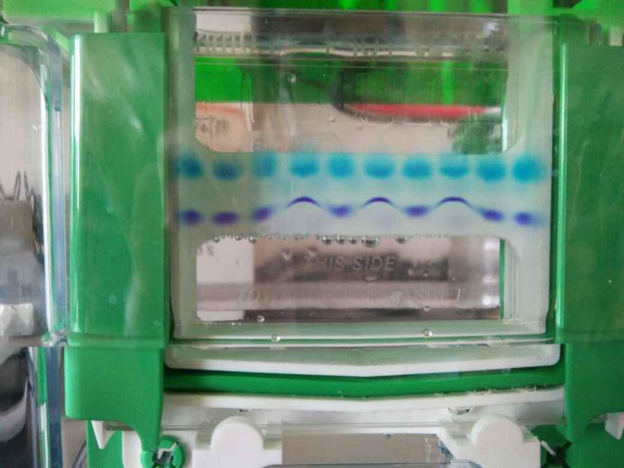 大家好,请问一个问题,我跑的是变性聚丙烯酰胺凝胶,用的loading buffer里面是加了甲酰胺,溴酚蓝,二甲苯氰的。跑胶的过程中二甲苯氰的条带是直线,而溴酚蓝带是弯弯曲曲的,如下图所示,这正常不?是什么原因造成的呢 @hc-material @gyesang 发自小木虫Android客户端 |