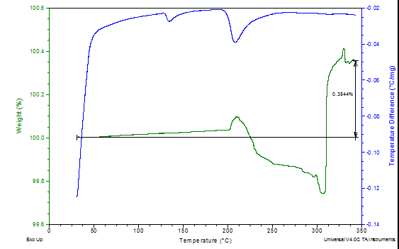 高手、大神帮忙分析一下DSC-TGA曲线,没整明白一开始重量蹭的上去是什么情况