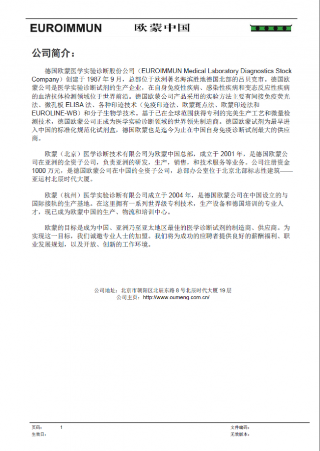 德资企业欧蒙医学诊断(中国)有限公司诚聘博士后、博士、硕士