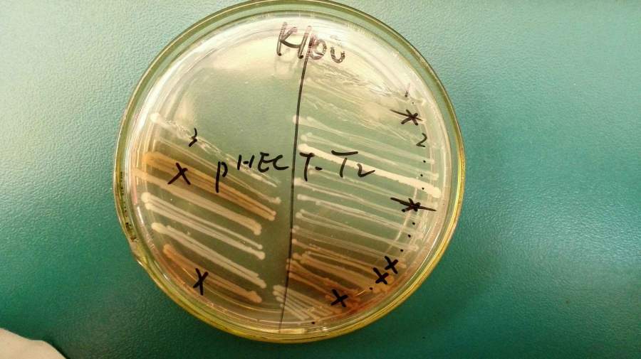 普通大肠杆菌感受态(实验室一直在用没有问题),转化了三次,划线后,每次菌板上都出现照片中的发红的菌线,好像被什么东西侵染了,培养基、牙签等都是新灭菌的。请问有遇到这种现象的同学吗?是什么原因呢? 发自小木虫Android客户端 |