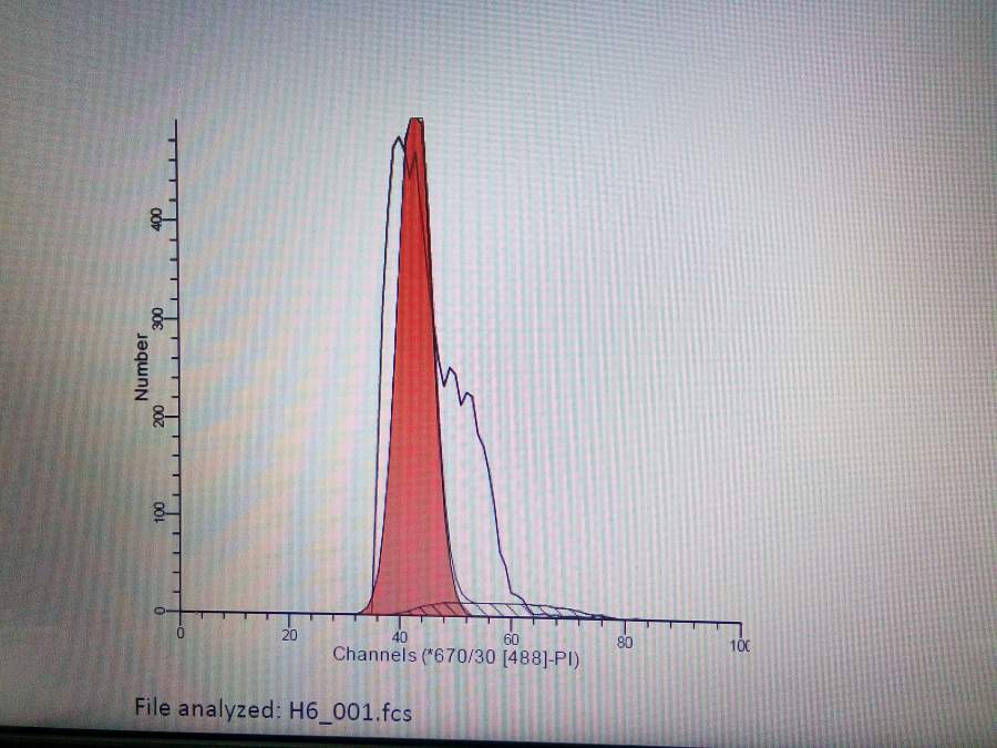 求大神帮我看看我做的细胞周期结果是这样的,没有G2期,不知道问题在哪,该怎么解释