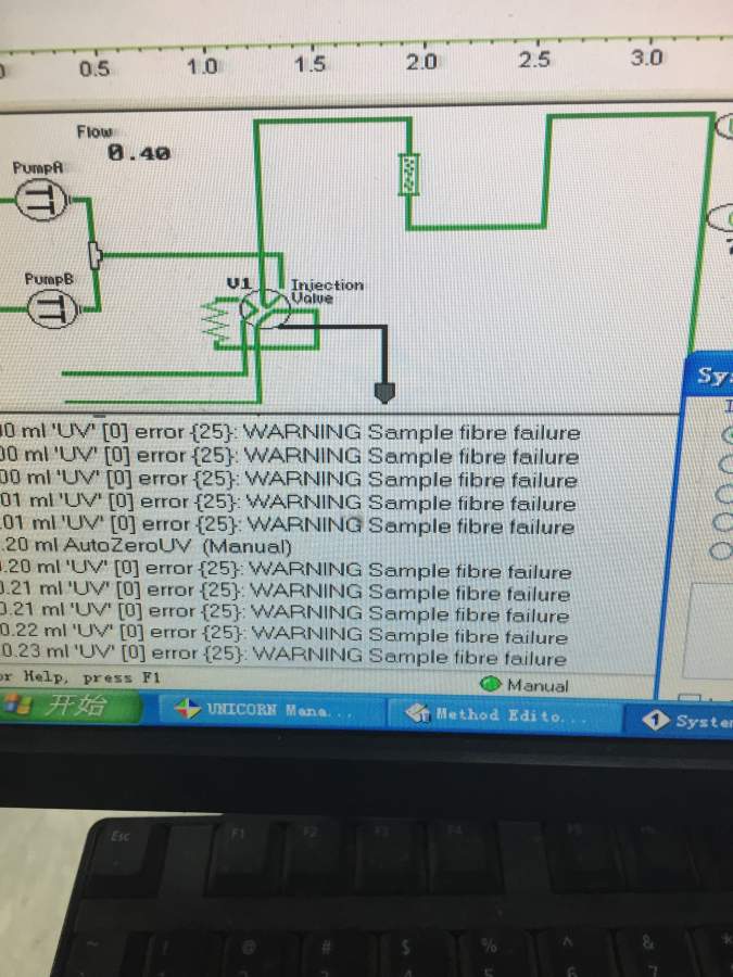 过分子筛时出现如图所示的bug,且看不到蛋白峰,求解。buffer里有500mM NaCl,磷酸盐缓冲体系,有千分之一的Triton100,溶液里有蛋白(跑过SDS-PAGE)。求问这是什么原因? IMG_0315.JPG |